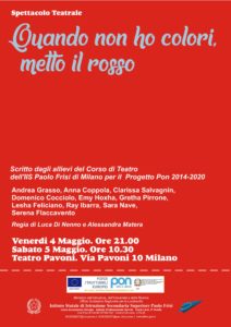 Oggetto: Saggio laboratorio teatrale corso PON: “Quando non ho colori, metto il rosso”.