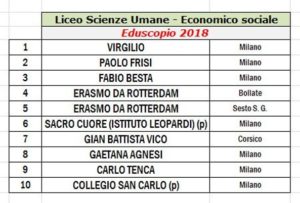 Il risultato della rilevazione della Fondazione Agnelli sulle migliori scuole di Milano ci colloca tra i primi dieci posti città sia come Istituto Professionale sia come LES (in questo caso al secondo posto).