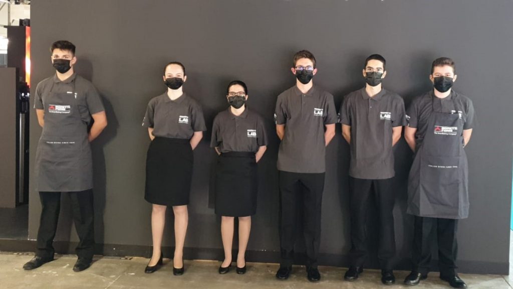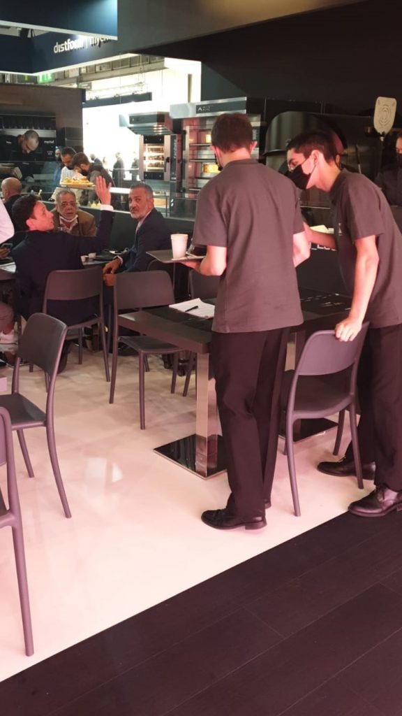 Gli studenti Riccardo Barborini, Noemi Bettinelli, Alessio Ferrari, Thomas Moiraghi, Valentina Rosavalle, Edoardo Tocco, delle classi 3Ao, 3Bo, 3Do dell’Olmo di Cornaredo collaborano con la Ditta Moretti e Forni presso il suo stand fieristico allestito in occasione dell’evento HOST 2021.
