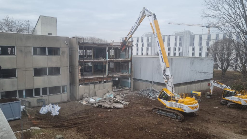Questa mattina, con l’inizio dei lavori di abbattimento del vecchio edificio di Via Amoretti 61, hanno finalmente preso il via i lavori per la costruzione del nuovo liceo Gastel che si evolveranno in un primo stadio nell’aprile 2025 con la consegna del settore aule e laboratori e la conclusione nell’anno successivo con il completamento delle palestre e del teatro-auditorium.